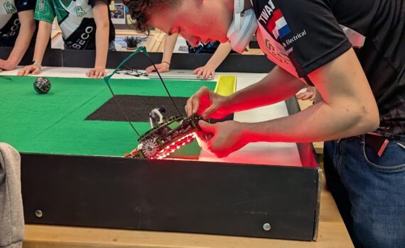 Na een reeks spannende competities is het seizoen voorbij en staat het nieuwe seizoen 2025-2026 alweer voor de deur! Sinds vorig jaar werkt de nieuwe generatie van Team Roboticus aan de voetbalrobots voor de 2v2 Soccer Lightweight League. Na maanden van hard werken namen we deel aan het Nederlands Kampioenschap […]